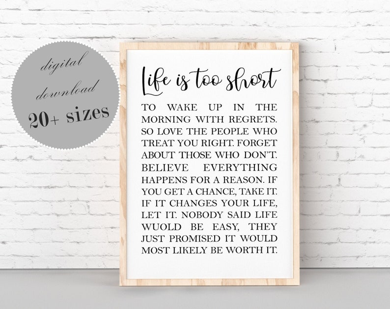 Life Is Too Short To Wake Up With Regrets Inspirational Etsy